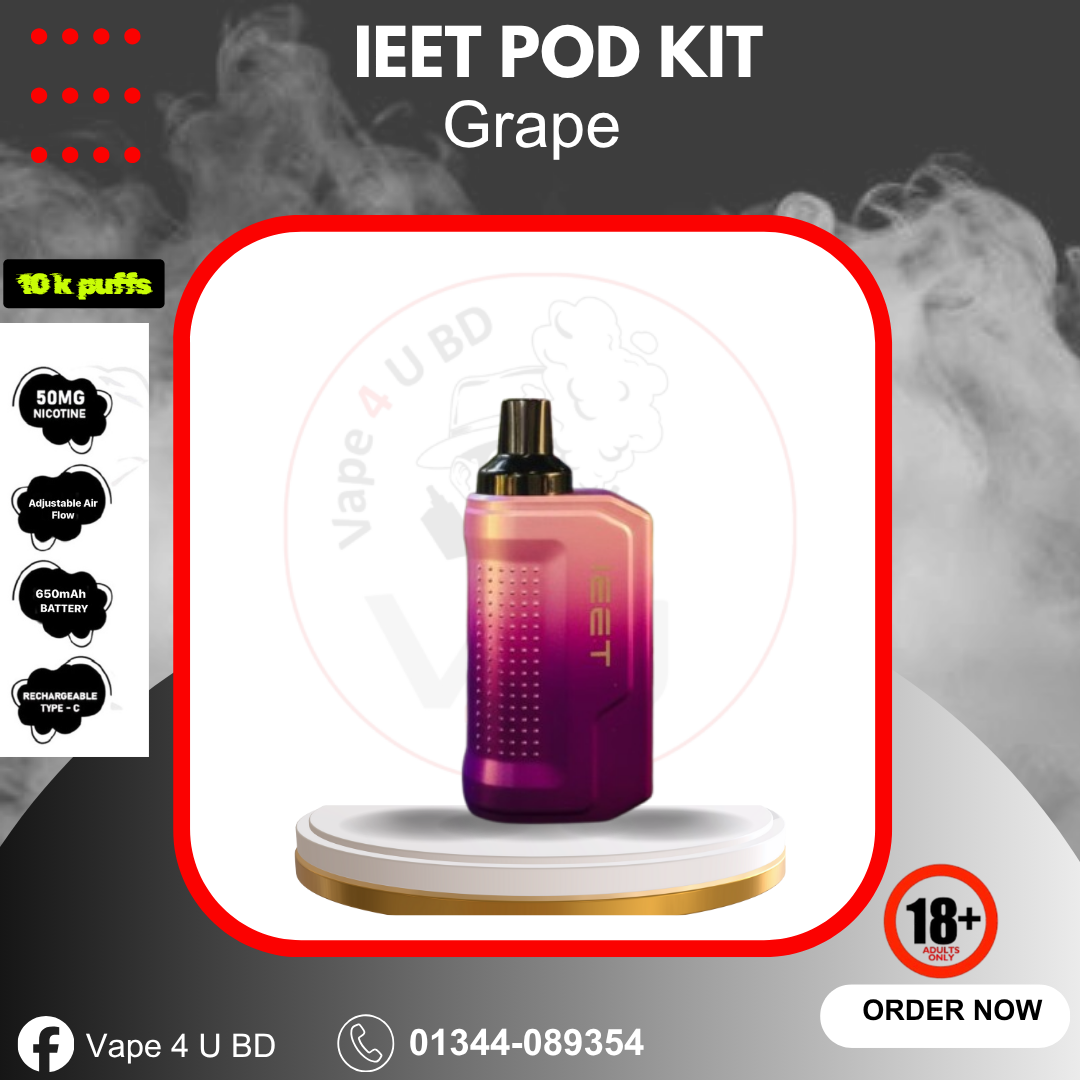 Get your authentic IEET 10K Grape Disposable Vape today from Vape 4 U BD, the No. 1 vape shop in Bangladesh, known for original products and fast delivery.