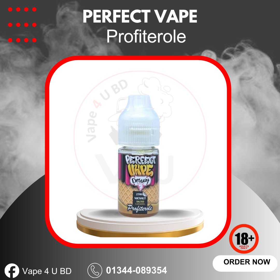 Description: Perfect Vape – Salted Caramel Profiterole NicSalt is a decadent e-liquid that captures the rich and indulgent flavors of creamy profiteroles drizzled with luscious salted caramel. This delightful blend offers a luxurious dessert experience, perfect for those who have a sweet tooth. The smooth nicotine salt formulation ensures a satisfying and enjoyable vaping experience, making it an excellent choice for all-day enjoyment.